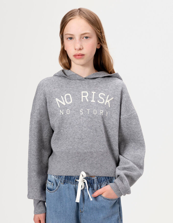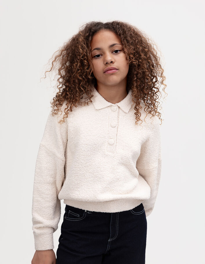 Cardigan à capuche 2-en-1 écru et gilet sans manches fille
