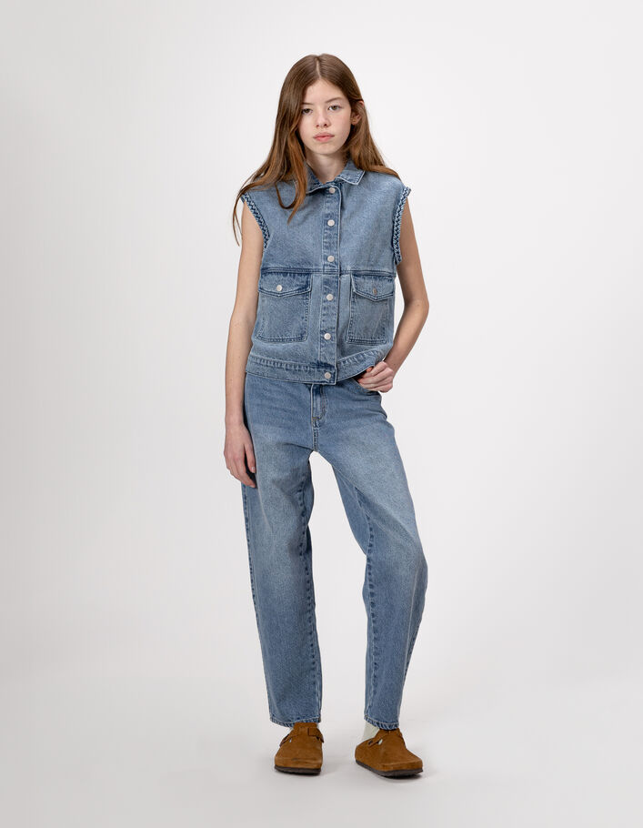 Veste sans manches en jean bleu fille