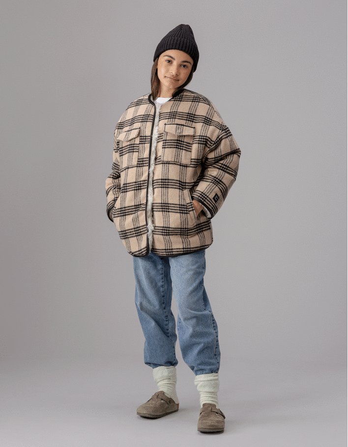 Manteau réversible beige carreaux et sherpa fille