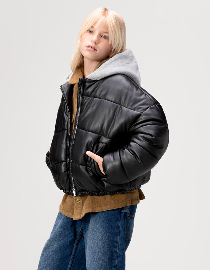 Doudoune courte noire capuche molleton fille