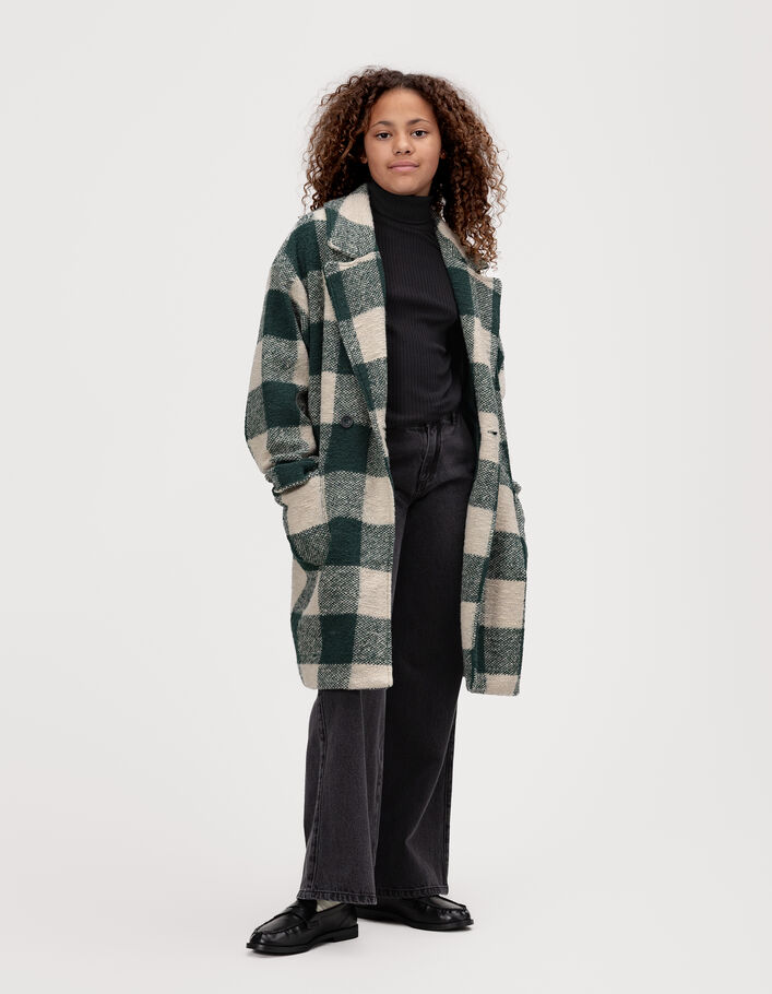 Manteau carreaux vert et écru fille