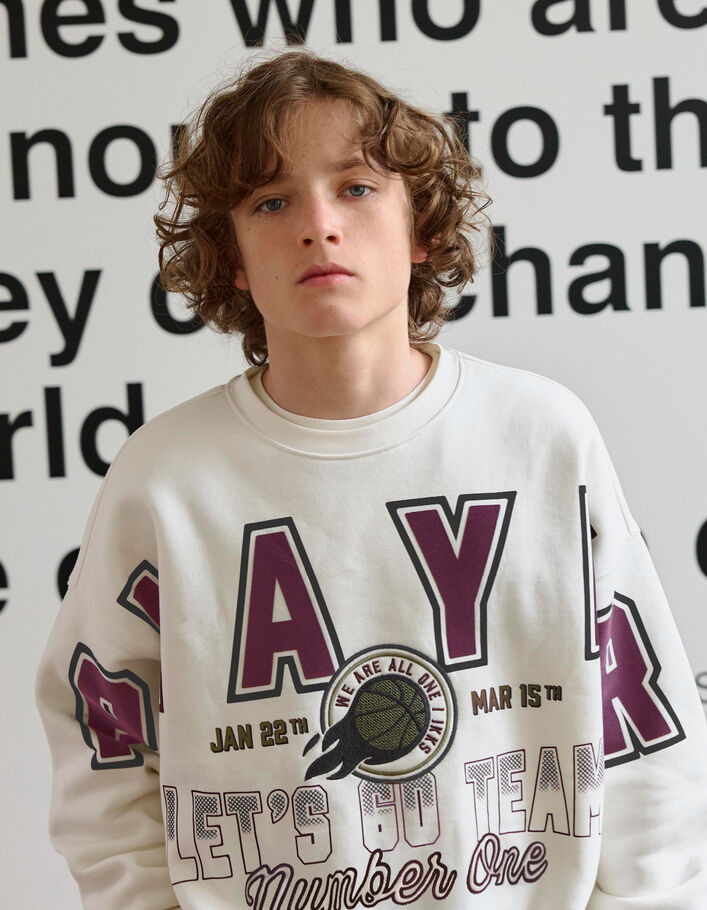 Sweat blanc maxi print et broderies garçon