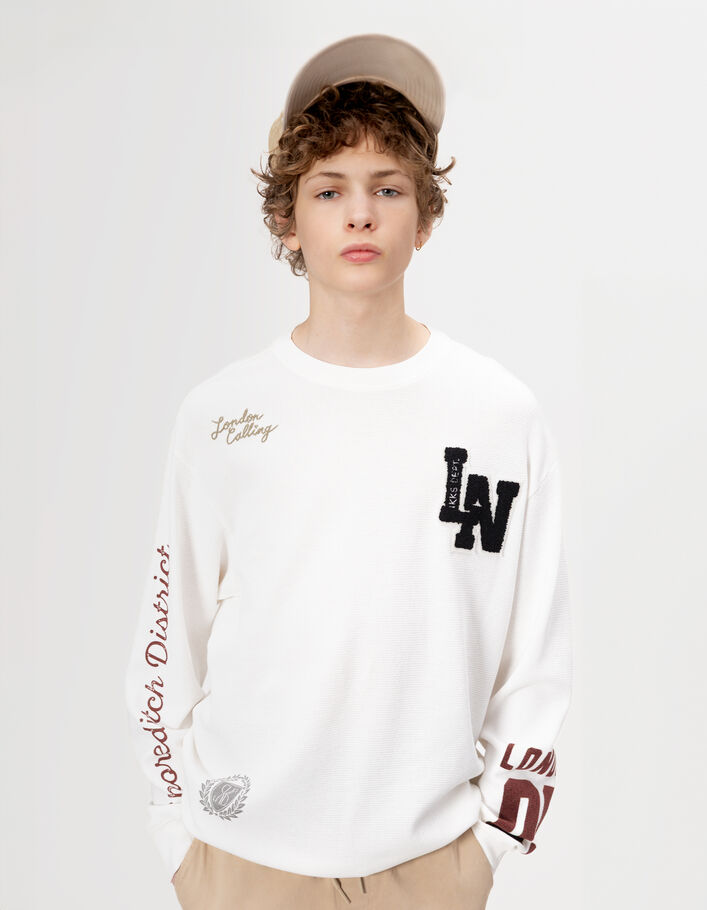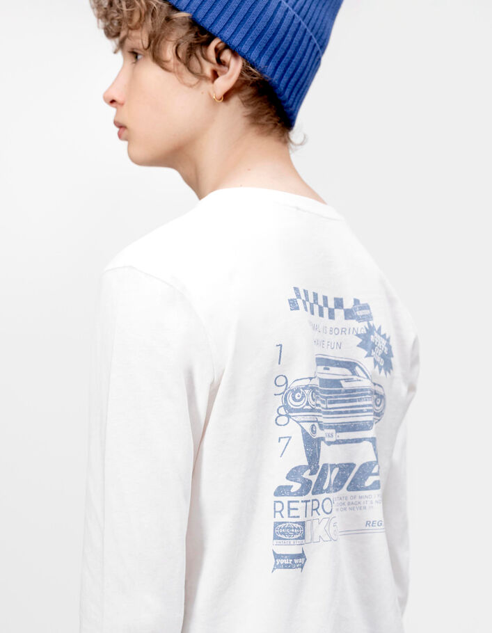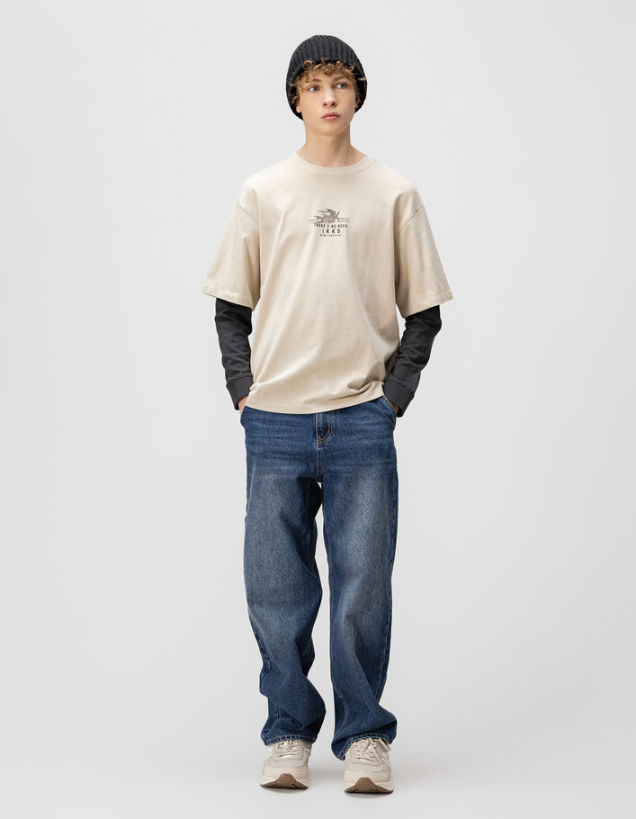 T-shirt beige coton bio manches trompe-l'oeil garçon