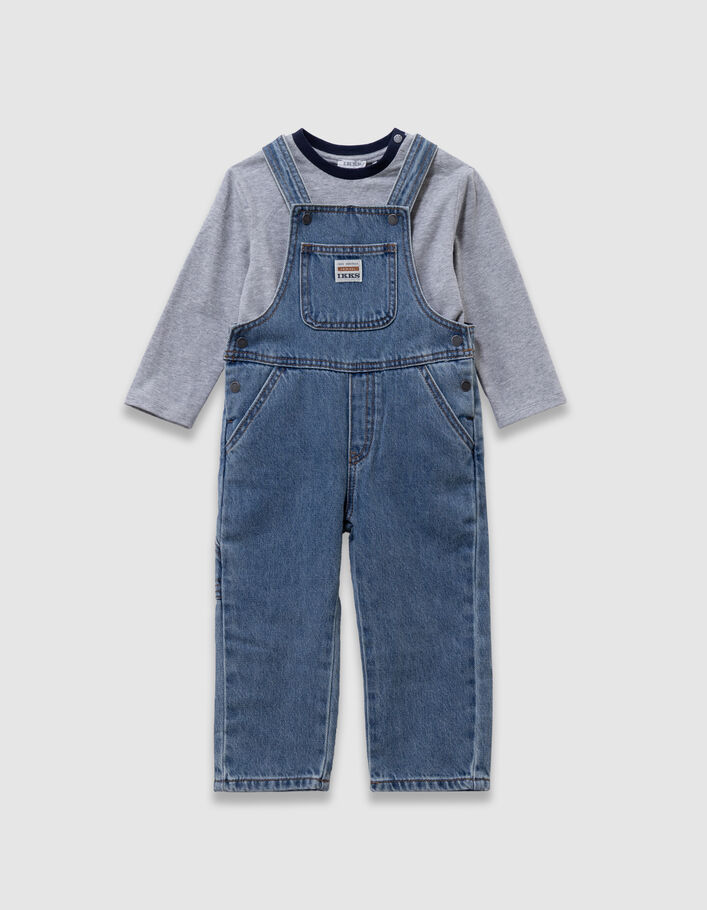 Ensemble t-shirt et salopette en jean bleu bébé garçon
