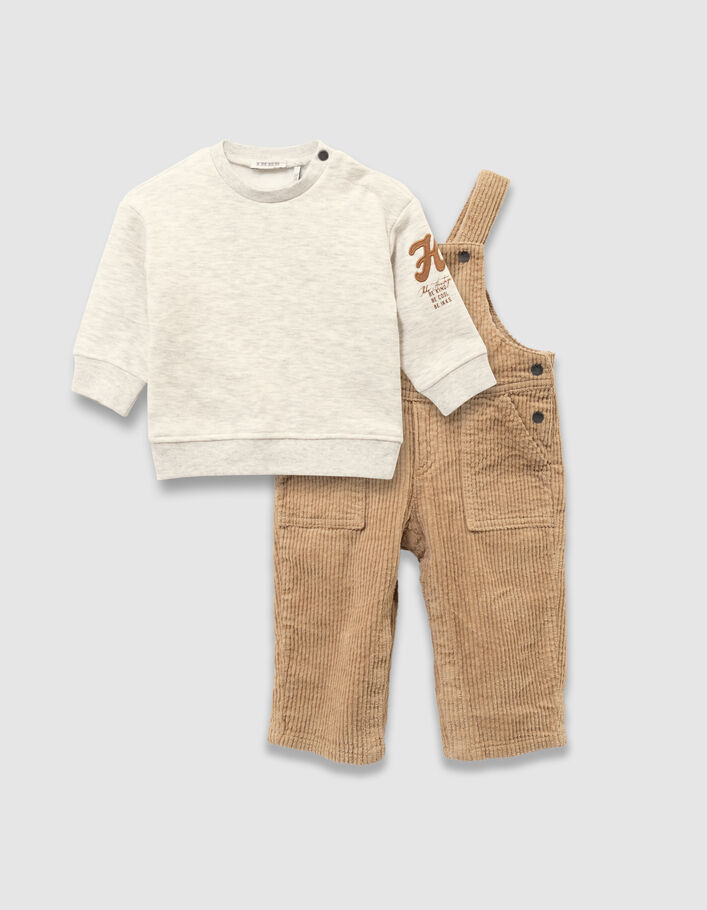 Ensemble sweat et salopette velours côtelé bébé garçon