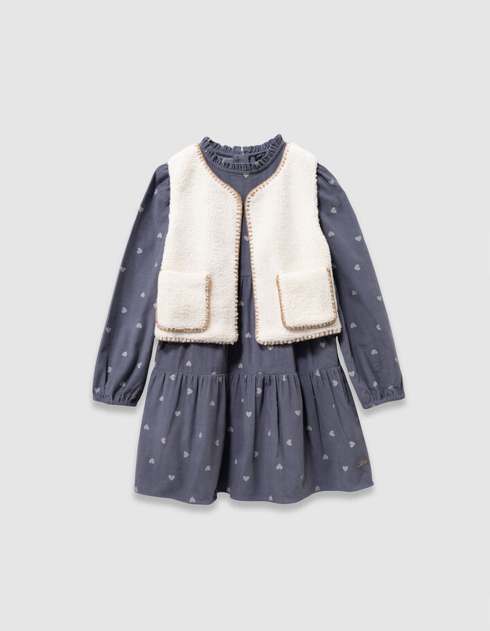 Robe 2-en-1 en velours bleu et gilet sans manches fille