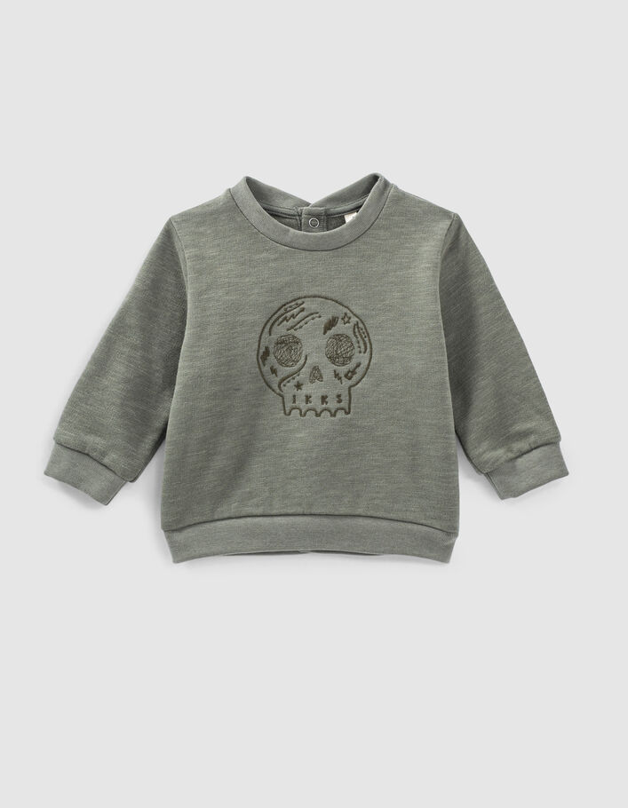Sweat bleu moyen brodé éclair en molleton bio bébé