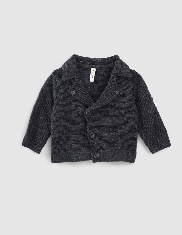 Cardigan mastic chiné esprit motard tricot coton bio bébé