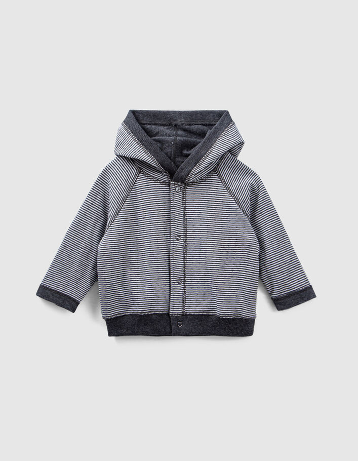 Cardigan réversible gris chiné et rayé coton bio bébé