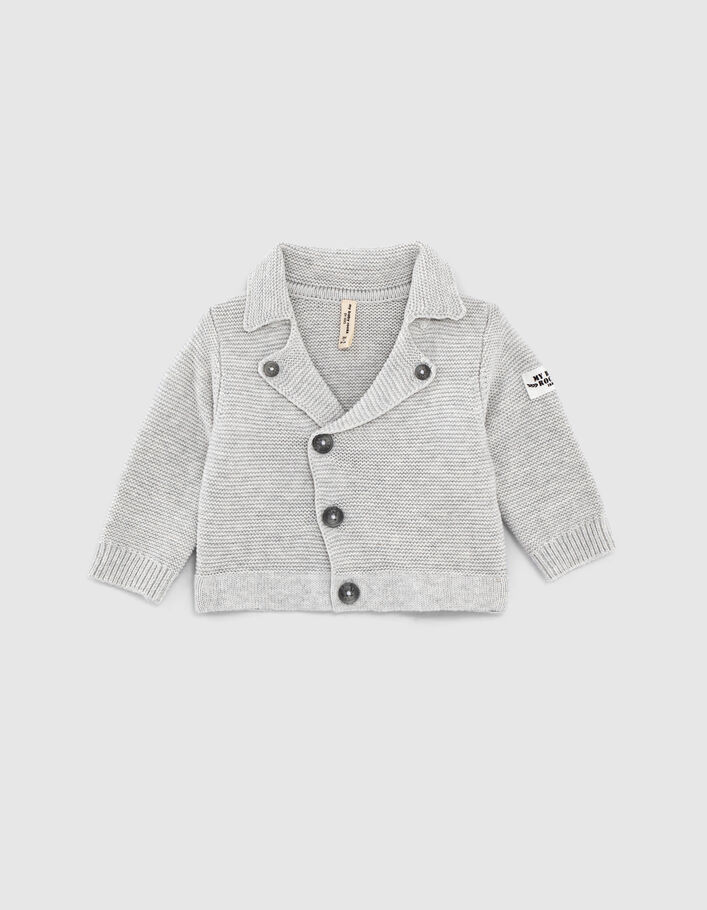 Cardigan gris chiné esprit motard tricot coton bio bébé