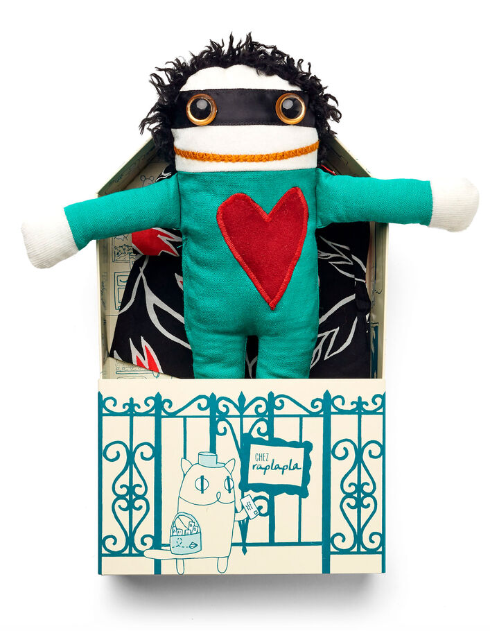 Poupée en tissu super-héros avec grand cœur rouge RAPLAPLA