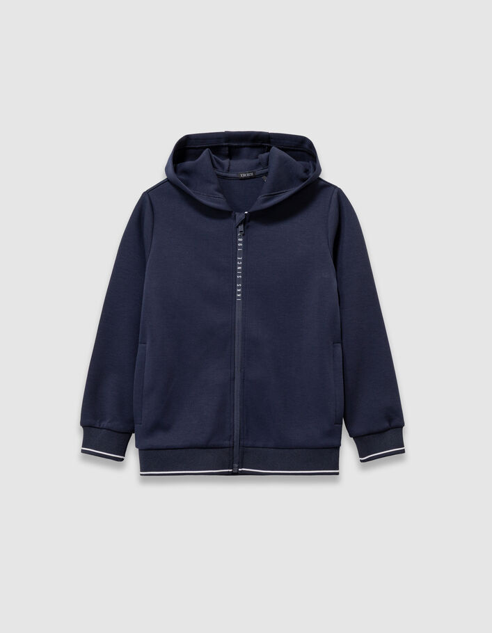Cardigan zippé marine à capuche typo zip garçon