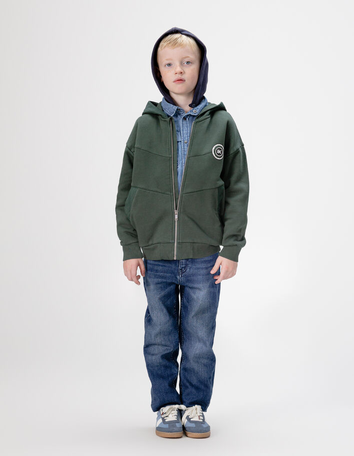 Sweat à capuche kaki et bleu en polaire garçon