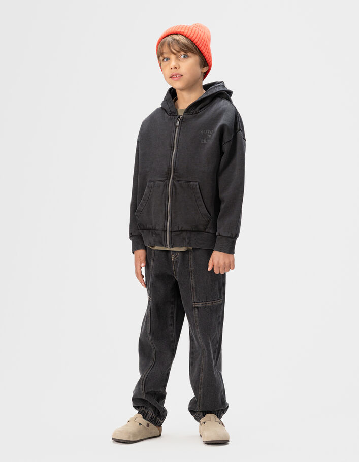 Cardigan zippé noir délavé à capuche garçon