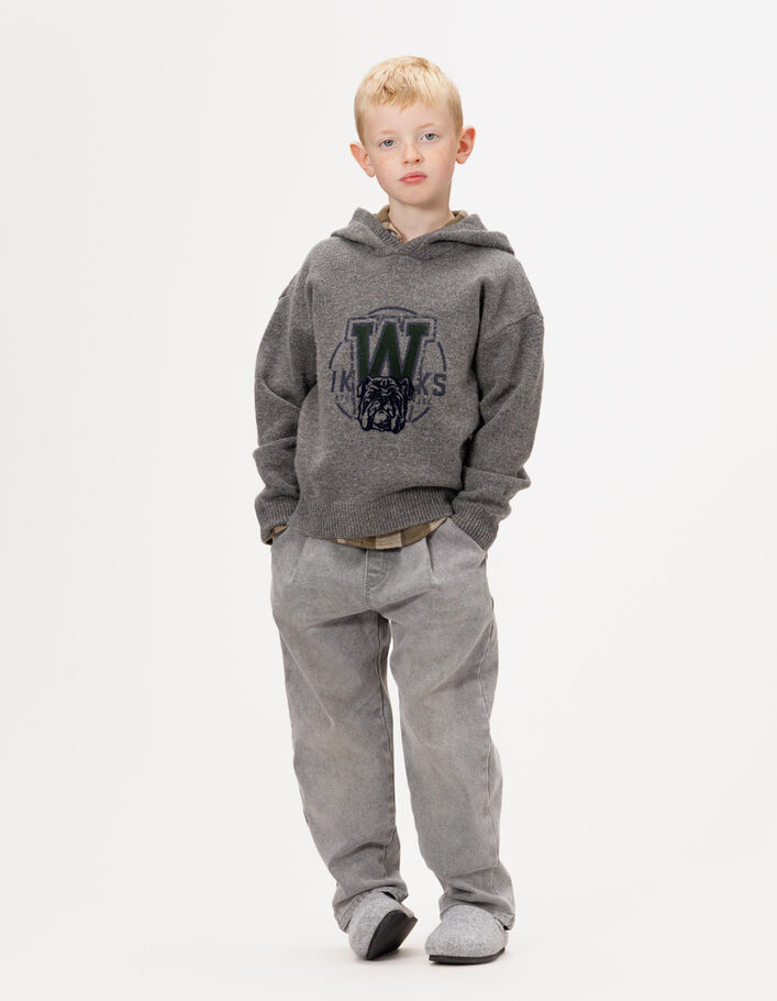 Pull à capuche gris tricot visuel chien garçon