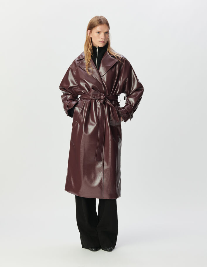 Trench long bordeaux façon vinyle Femme
