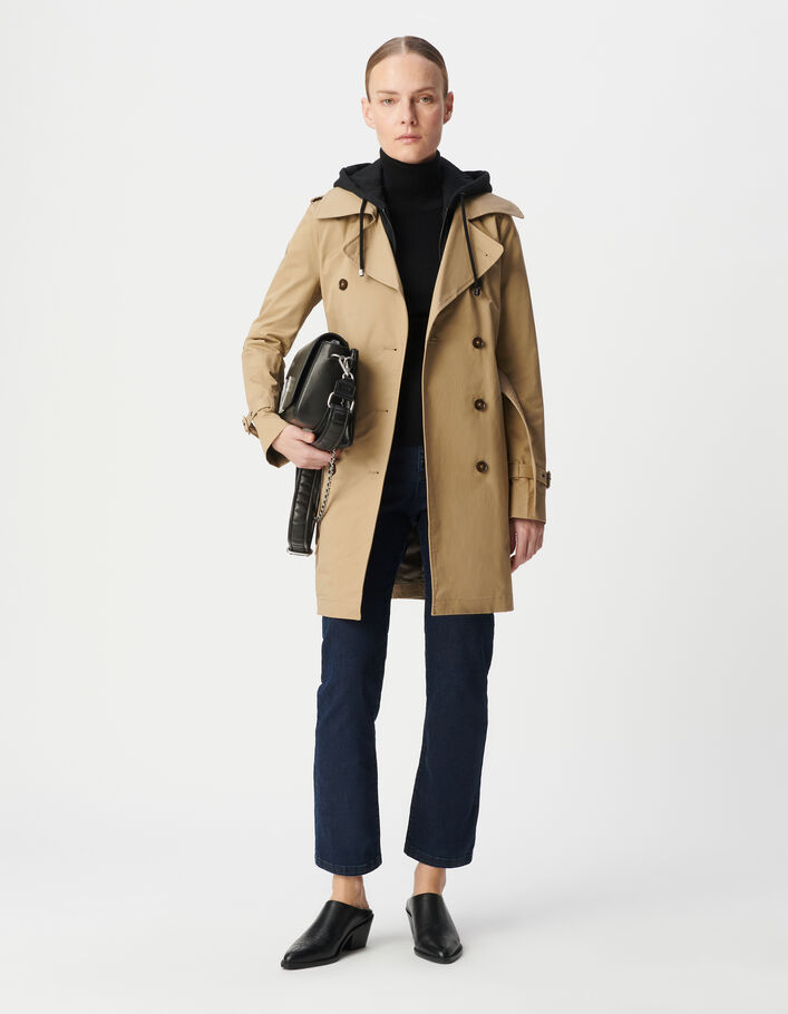 Trench beige capuche noire amovible Femme