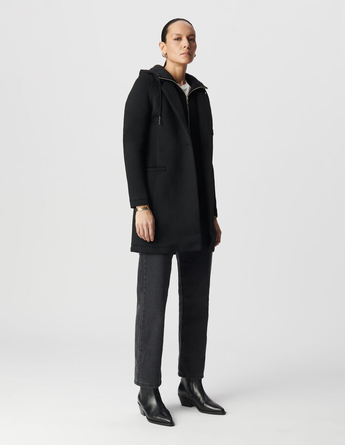 Manteau noir néoprène capuche amovible Femme