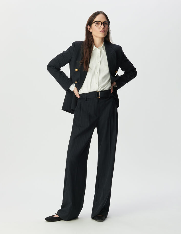 Pantalon de tailleur noir rayures tennis couleur Femme
