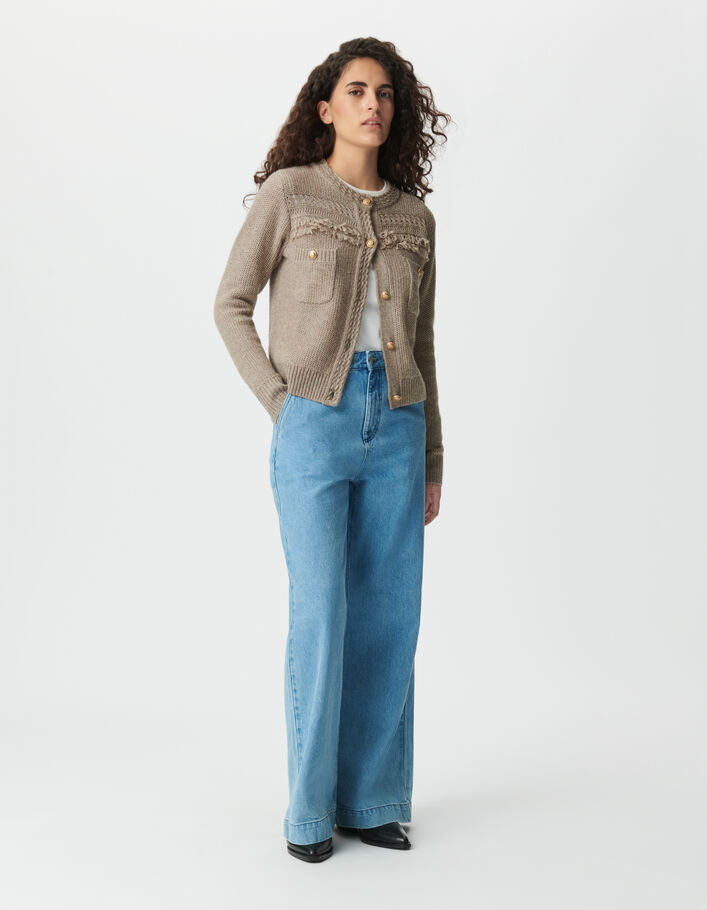 Cardigan beige tricot détails franges boutons dorés Femme