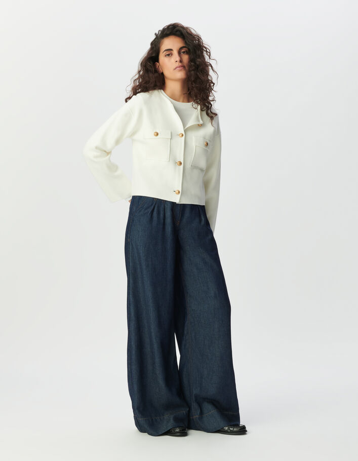 Cardigan court blanc tricot poches plaquées Femme