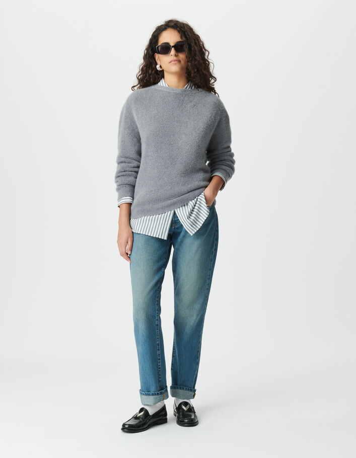 Pull oversize bleu tricot longueur cropped Femme