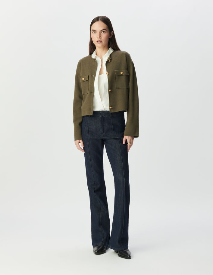 Cardigan court kaki tricot poches plaquées Femme