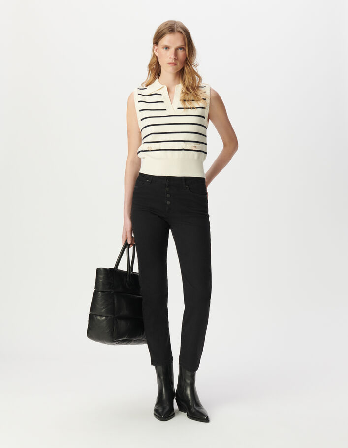 Pull polo blanc tricot rayures marine Femme