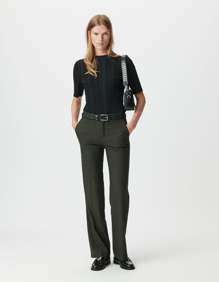 Pull kaki tricot lurex épaulettes et torsades Femme