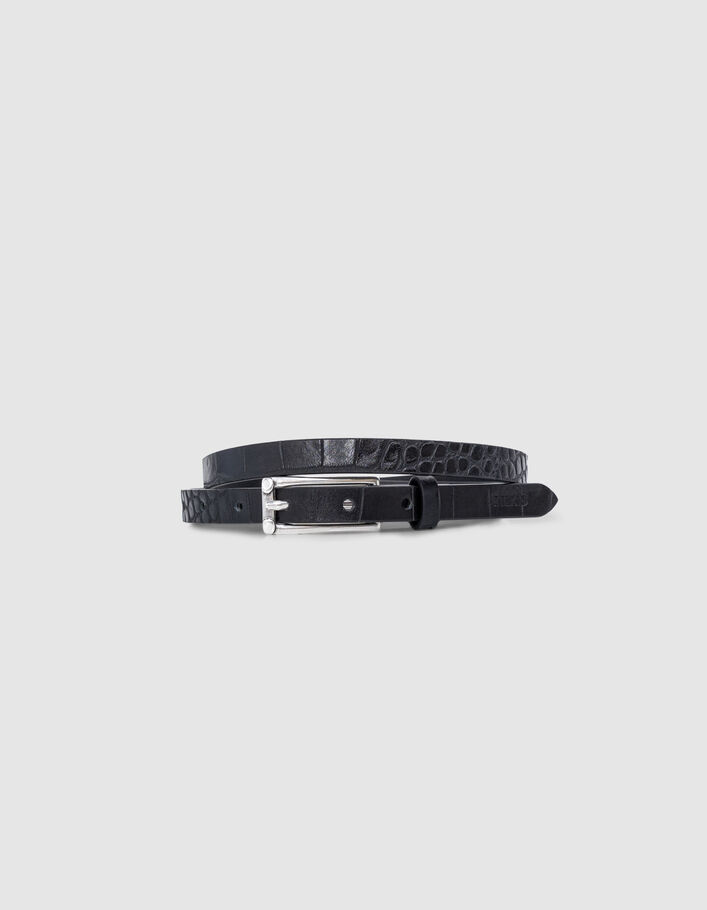 Ceinture fine noire cuir embossage croco Femme