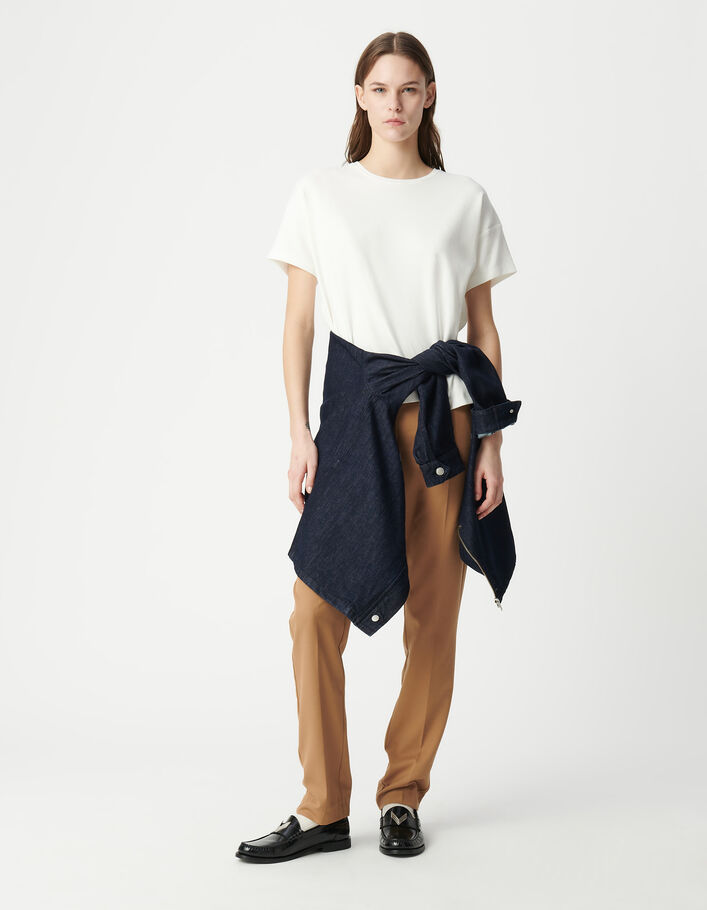Tee-shirt col rond blanc cassé à message pailleté Femme