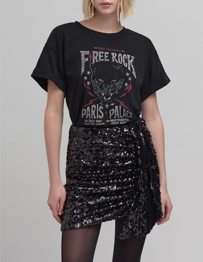 Jupe courte noire sequins brodés Femme