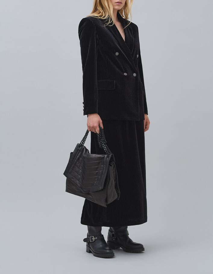 Jupe crayon noire panne de velours côtelée Femme