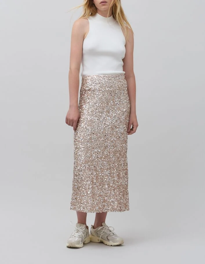 Jupe champagne brodée sequins Femme