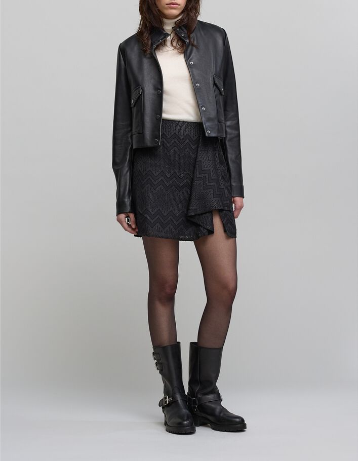 Jupe courte noire voile jacquard chevrons lurex Femme