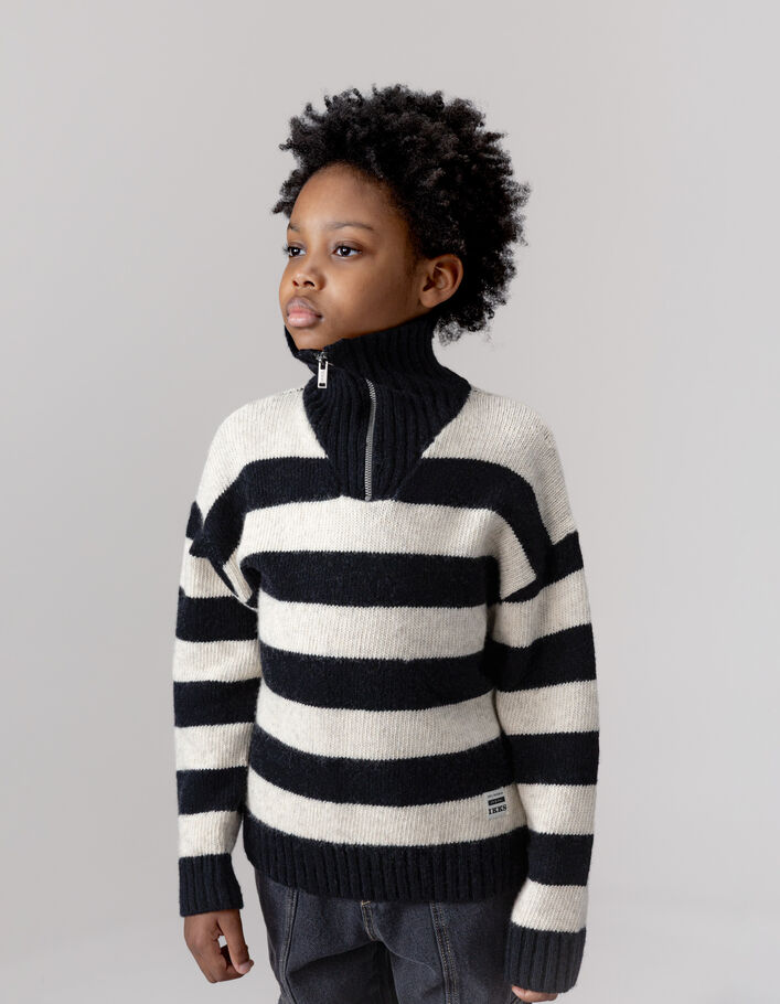 Pull camionneur noir rayures beiges tricot garçon