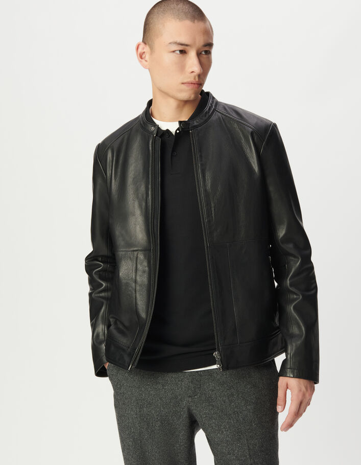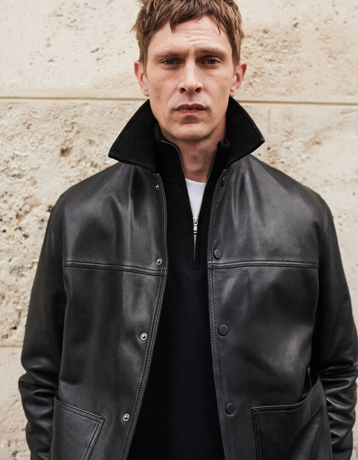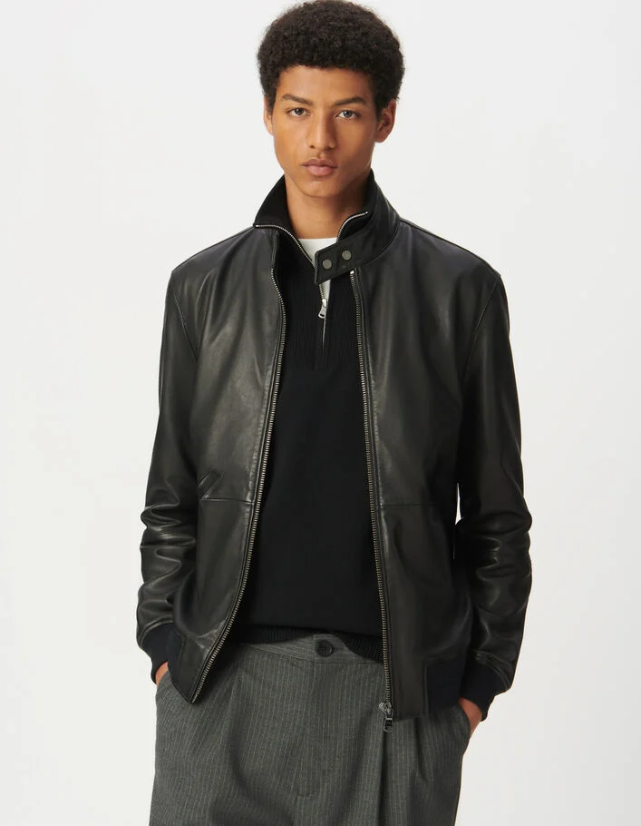 Bomber noir en cuir à parmenture amovible Homme