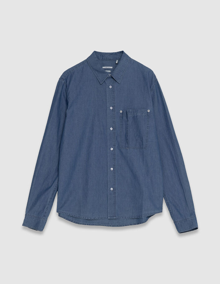 Chemise regular bleu chambray poche asymétrique Homme