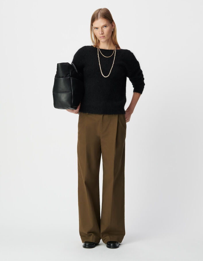 Pull noir tricot fin découpe dentelle dos Femme
