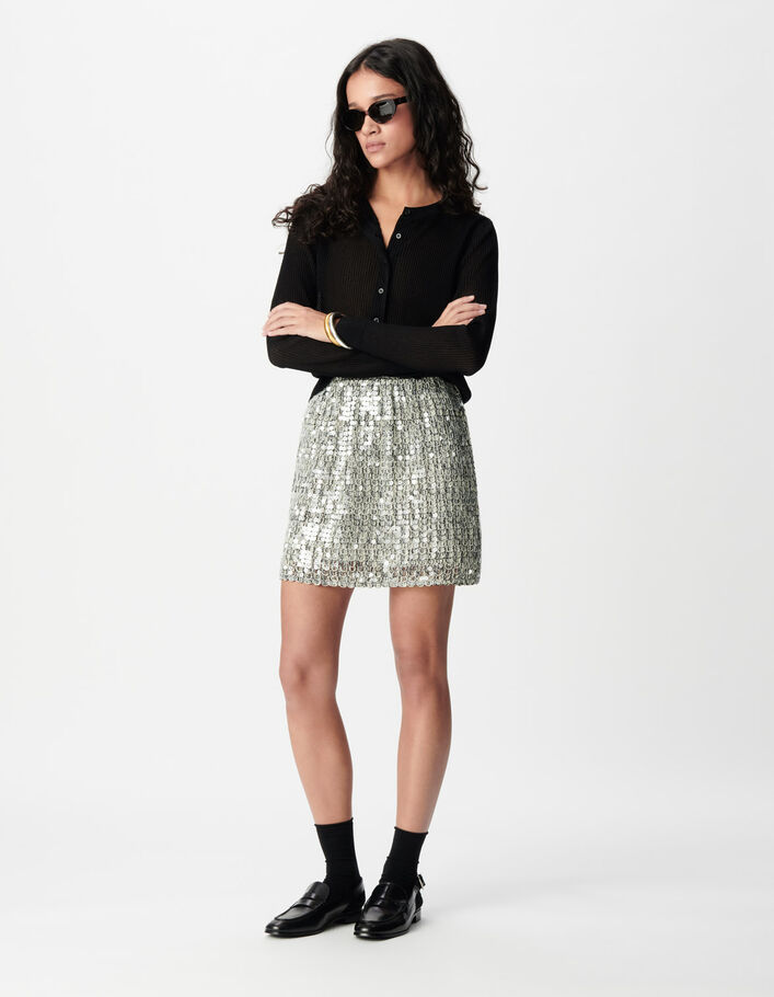 Jupe droite sequins argentés Femme