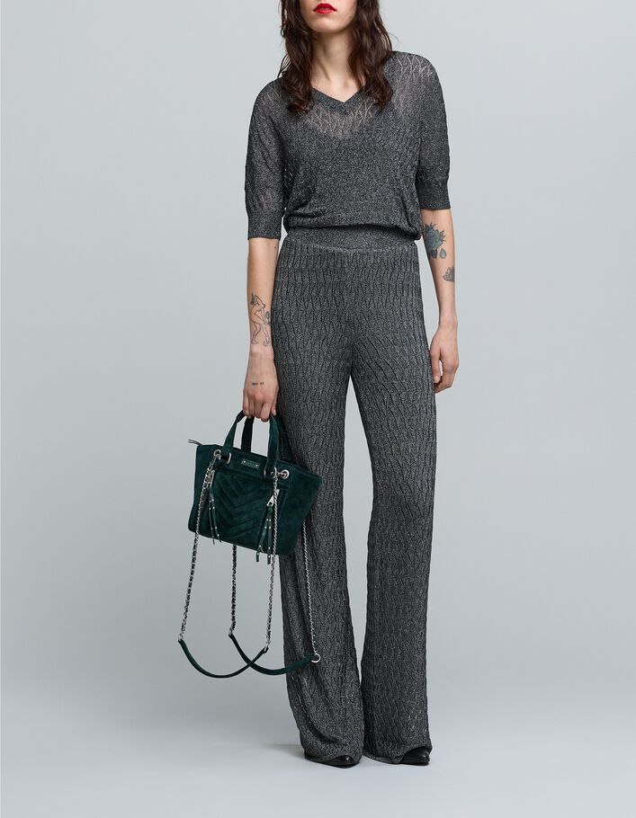 Pantalon gris maille fine graphique ajourée Femme