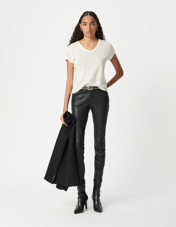 Pantalon noir taille haute en cuir d'agneau femme