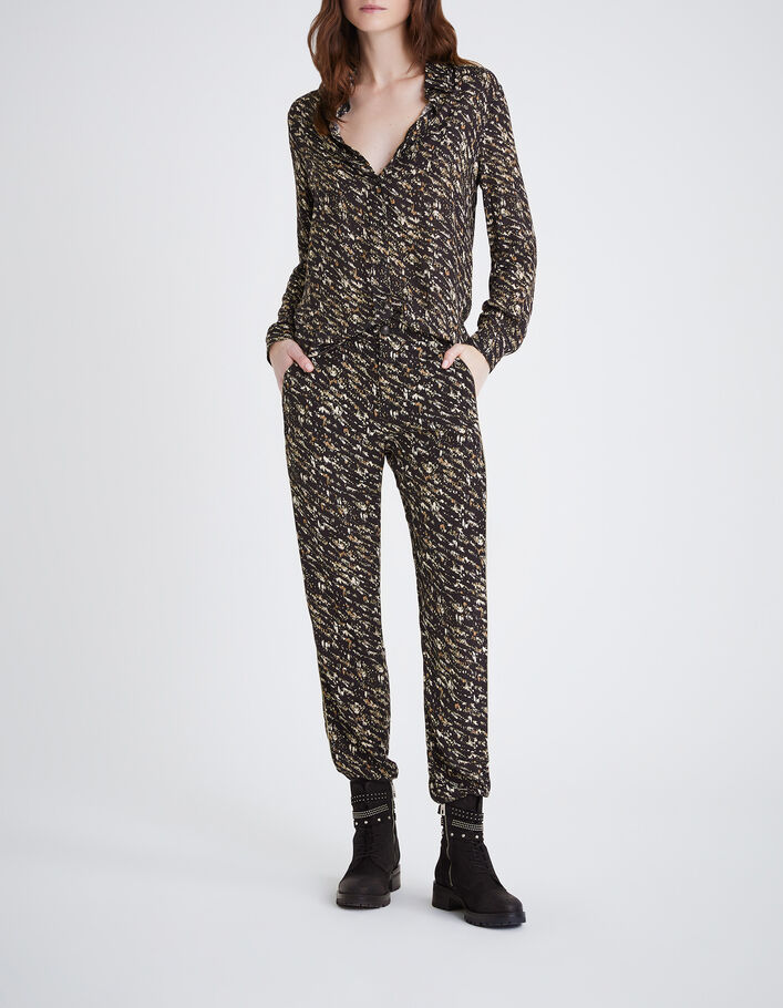 Pantalon fluide noir imprimé fusain Femme