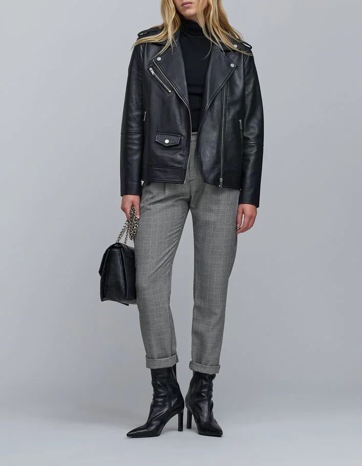 Pantalon cuir noir slim esprit motard Femme
