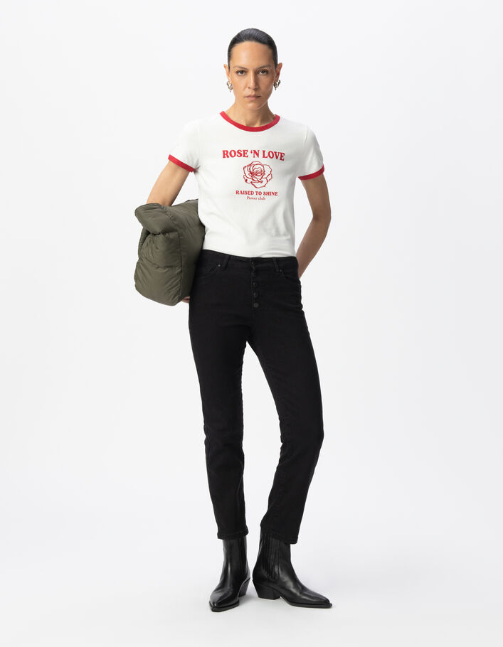 Tee-shirt blanc coton bio message et broderie rose Femme