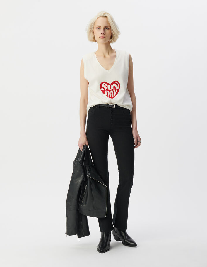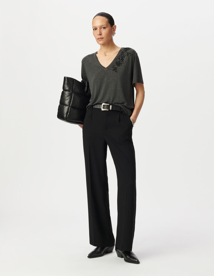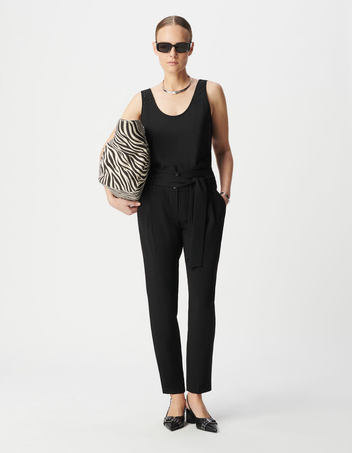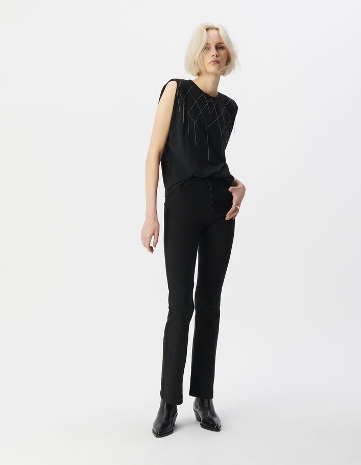 Tee-shirt à épaulettes noir décor micro-billes Femme