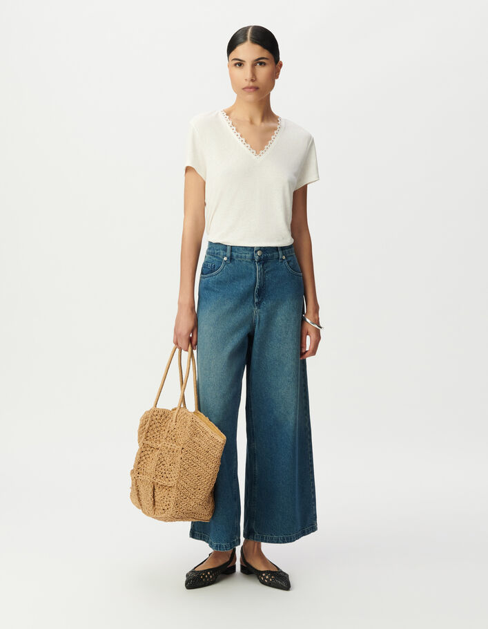 Tee-shirt blanc encolure V devant et dos