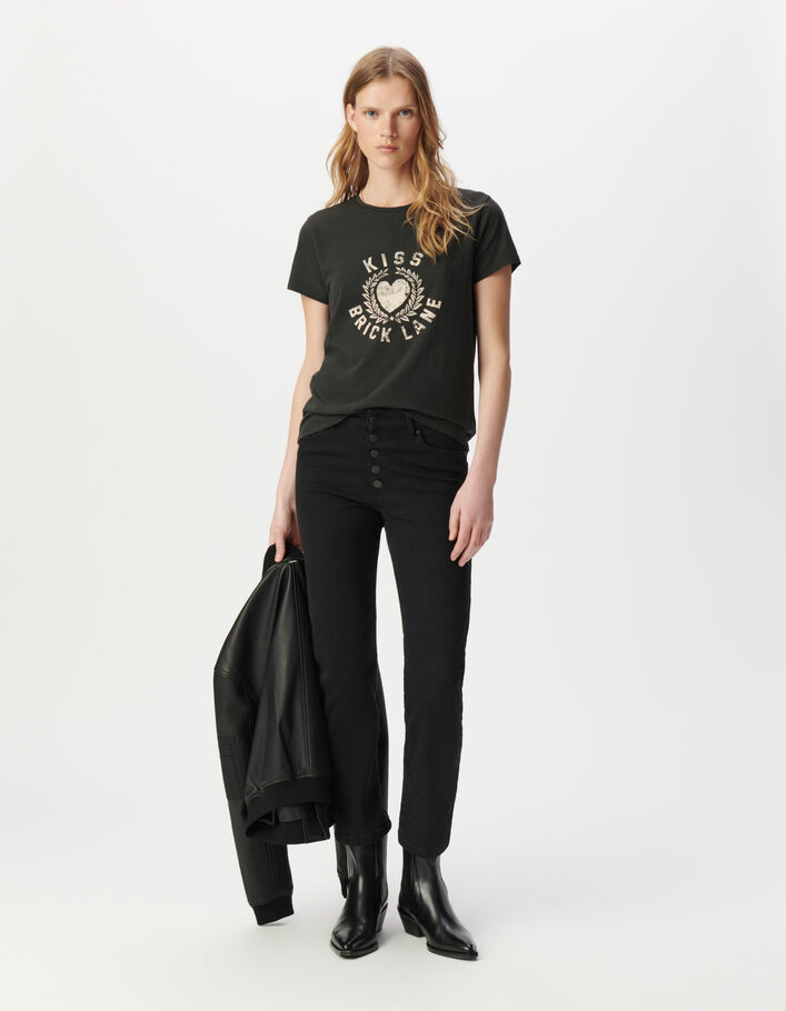 Tee-shirt gris coton bio message et visuel coeur Femme