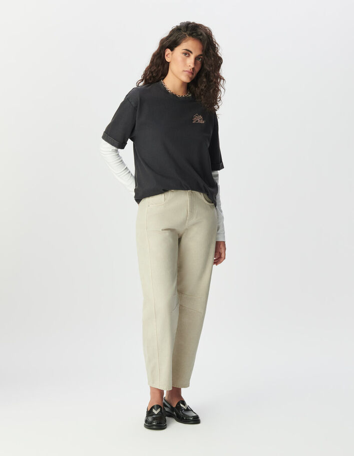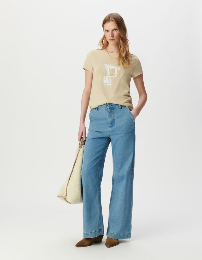 Tee-shirt beige message lettres brodées Femme