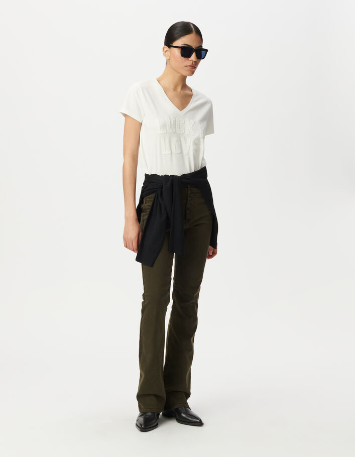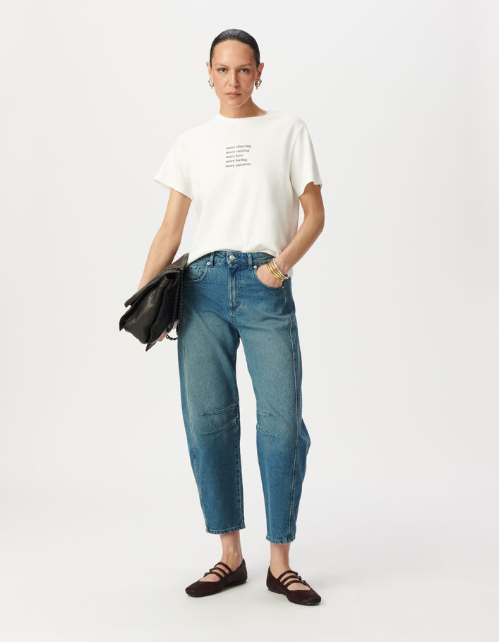 Tee-shirt col rond blanc cassé à message pailleté Femme